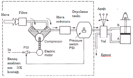 Şekil 3: W ağırlığını kaldırmak için kullanılan pnömatik sistem